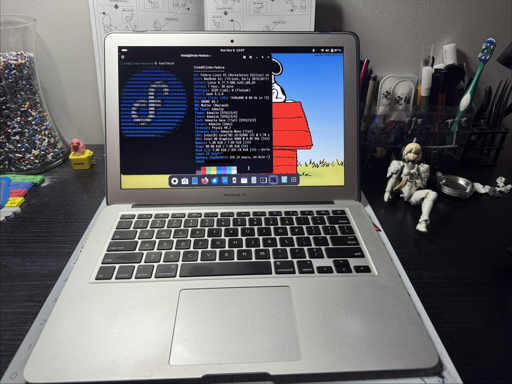Made a bootable drive with Fedora 43 work station on it, figured gnome would be the most Apple like spin. Everything went super smooth until I realized that the WiFi drivers weren’t installed lol. I also didn’t have a Ethernet adapter for usb-a so I had to overnight it to me while my parents swore I bricked their Mac all night. Got the adapter this AM, hooked it up, installed the drivers and other necessary tweaks, and viola! This Mac has new life.