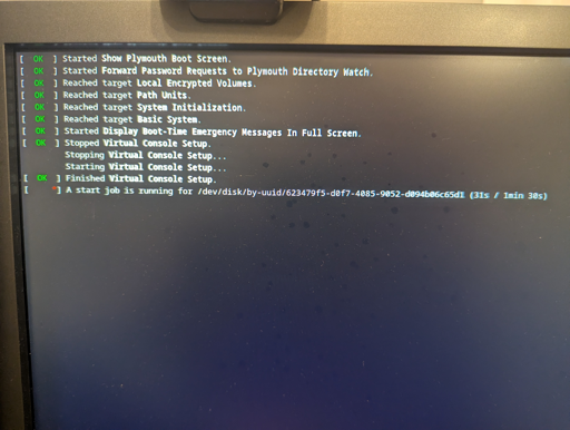 Yeah me too. i had (unknowingly) made it necessary for the system to run in fstab, and I had knowingly disconnected it.