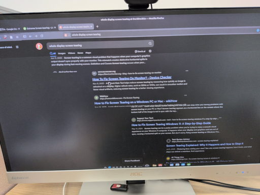 A few days ago, it began tearing like crazy, and it happens after turning the monitor on for a few minutes. It came to the point where the computer is nearly unusable, so I want to solve the issue once and for all.